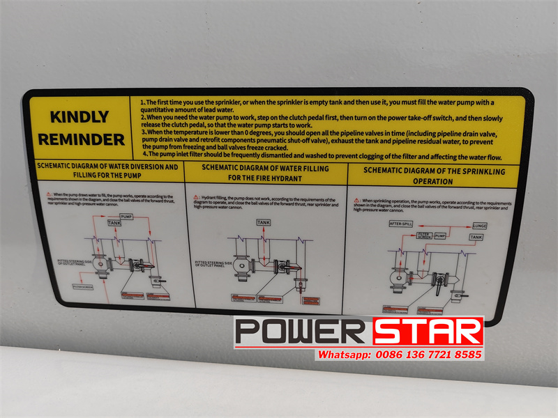 Front spray, there is a working platform at the rear of the vehicle, equipped with a high-pressure cleaner and a high-pressure water gun, which can be adjusted according to needs, and equipped with a high-quality sprinkler pump, equipped with a fire interface and an overflow valve, with a self-priming function. |