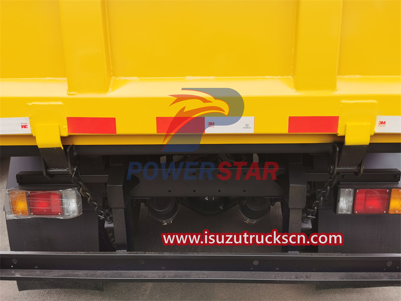 High-strength steelIsuzu medium-duty NPR 5tons dump truck has a solid frame and reliable suspension system to ensure that it can carry heavy loads stably during transportation. Its body is made of high-strength materials with excellent durability and damage resistance, and can withstand the test of various harsh working environments. In addition, the vehicle is equipped with a powerful engine and efficient transmission system, allowing it to drive smoothly on complex road conditions, thus improving work efficiency and safety. It is equipped with a reliable unloading device, which can control the lifting and dumping of the cargo box through the operation console, so that the cargo can be unloaded quickly and safely. This self-unloading function can greatly improve the loading and unloading speed and efficiency, save labor costs, reduce working hours, and has important economic value for logistics companies and construction sites.