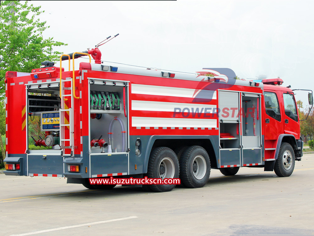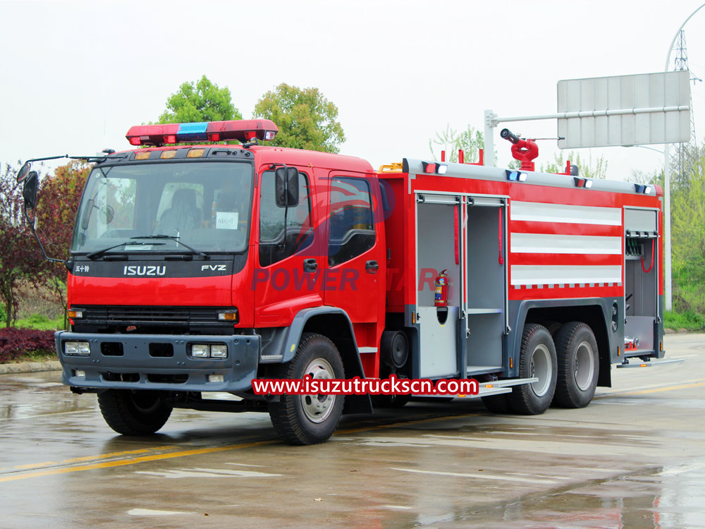 ISUZU Fire Truck is one of the special vehicles necessary for firefighting tasks. It is widely used in fire rescue, emergency response to hazardous chemical leakage, personnel evacuation, medical rescue and other fields. With its unique functions and design, Isuzu fire truck has become an important piece of equipment in fire rescue work. This article will introduce the types and functions of Isuzu fire truck. 1. Types of Isuzu fire engine: 1). Isuzu fire water tanker truck: Isuzu water tank fire trucks are mainly used to transport and store fire-fighting water sources. It is usually equipped with a large-capacity water tank, and delivers water to the fire scene through pipes and sprinklers to carry out fire-fighting operations. Isuzu fire water tankers can also be equipped with a pressurized pump as needed to provide high-pressure water spray or dry powder spray and other fire extinguishing media. 2).Isuzu firefighting foam truck: Compared with ordinary fire trucks, Isuzu foam fire trucks have added foam liquid storage and injection devices, which can produce rich foam liquid for use in fires that are difficult to extinguish. The foam liquid can form a protective film, effectively inhibit the spread of flames, and has a certain thermal insulation effect to protect the safety of personnel and equipment. 3).Isuzu dry powder fire extinguisher: Isuzu dry powder fire extinguishing fire trucks are usually equipped with dry powder fire extinguishing devices, which can spray dry powder into the fire scene to quickly extinguish the flames. Dry powder fire extinguishing trucks are suitable for various types of fires and can form a large amount of fire extinguishing media in a short period of time to control the fire within a controllable range. 4).Isuzu fire ladder truck: The Isuzu ladder fire truck is a special firefighting vehicle that uses telescopic ladders to fight fires in places such as high altitudes, deep wells, and narrow spaces. Ladder trucks are usually equipped with retractable ladders that can reach heights of tens or even hundreds of meters. A water spray device can also be installed on the basket of the ladder for high-altitude fire extinguishing. 2. Structure and function of Isuzu fire engine The structure of Isuzu fire engine can be divided into several parts such as body, power system, water tank system, foam device and communication system. 1). Body: The body of the Isuzu fire engine is usually made of high-hardness steel plates and has strong impact resistance. There are multiple lockers and tool boxes on the body for storing fire extinguishing equipment and rescue tools. The car body can also be equipped with a light warning device to send out warning signals to remind traffic drivers to be vigilant. 2). Power system: Isuzu fire engine is usually equipped with a powerful power system to ensure that it reaches the accident scene quickly. The power system generally consists of a diesel engine or a gasoline engine with high power and torque. 3). Water tank system: The water tank system of Isuzu fire engine is its main fire extinguishing device. Water tanks are usually made of special materials that are resistant to high pressure and have capacities ranging from a few thousand liters to tens of thousands of liters. The water tank is equipped with a water pump and a water spray device, which can transport water to the fire scene and spray water to extinguish the fire. 4). Foam device: Foam device is one of the important components of Isuzu fire engine. It consists of a foam liquid storage tank, a foam injector and a control system. Through the control system, the concentration and injection volume of the foam liquid can be adjusted to adapt to different types of fires. 5). Communication system: Isuzu fire engine is equipped with advanced communication equipment to ensure timely communication with the command center and other rescue forces. Communication systems usually include radios and walkie-talkies, which can maintain contact during combat and obtain important instructions and information. 3. How to use and precautions for Isuzu fire tender 1. When using Isuzu fire tender, you must first become familiar with the various components and functions of the vehicle. Understand the operating principles and usage of the vehicle, and master the correct operating steps to ensure that the fire truck is put into use quickly and efficiently in emergency situations. 2. Isuzu fire tender must be kept in good condition at all times while driving. Maintain and maintain vehicles in a timely manner to ensure the normal operation of each component. Regularly inspect important components such as water tanks, foam units and communication systems to ensure their reliability and safety. 3. During the fire rescue process, the appropriate Isuzu fire engine and fire extinguishing medium should be selected according to the nature and scale of the fire. For different types of fires, different type...