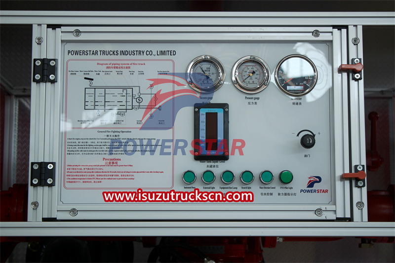 When the fire truck uses water from the water tank, open the rear water inlet butterfly valve, start the fire pump, and perform the following operations: