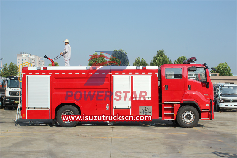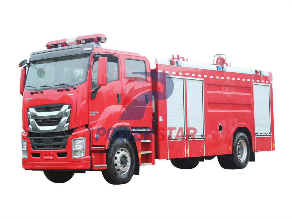 ISUZU GIGA 4x2 240hp Euro 6 7000 liters water tank fire truck for saleIsuzu Giga fire truck, also known as Isuzu Giga fire tender,Isuzu Giga fire engine, is a vehicle specially used for fire fighting or other emergency rescue purposes. The Isuzu Giga fire trucks are usually stationed in the fire station, and firefighters drive them to the scene when an alarm occurs. The Giga fire truck Isuzu in most areas are painted bright red (some areas also have bright yellow fire trucks), with sirens and flashing lights on the roof. Fire truck is a general term for all types of fire-fighting vehicles equipped with various fire-fighting equipment and fire-fighting appliances. It is currently the main tool for firefighting forces to fight fires and is the basic mobile fire-fighting equipment. The quality level of fire trucks reflects the level of a country's fire protection equipment and even the level of the country's entire fire protection industry.