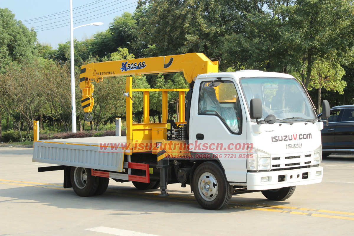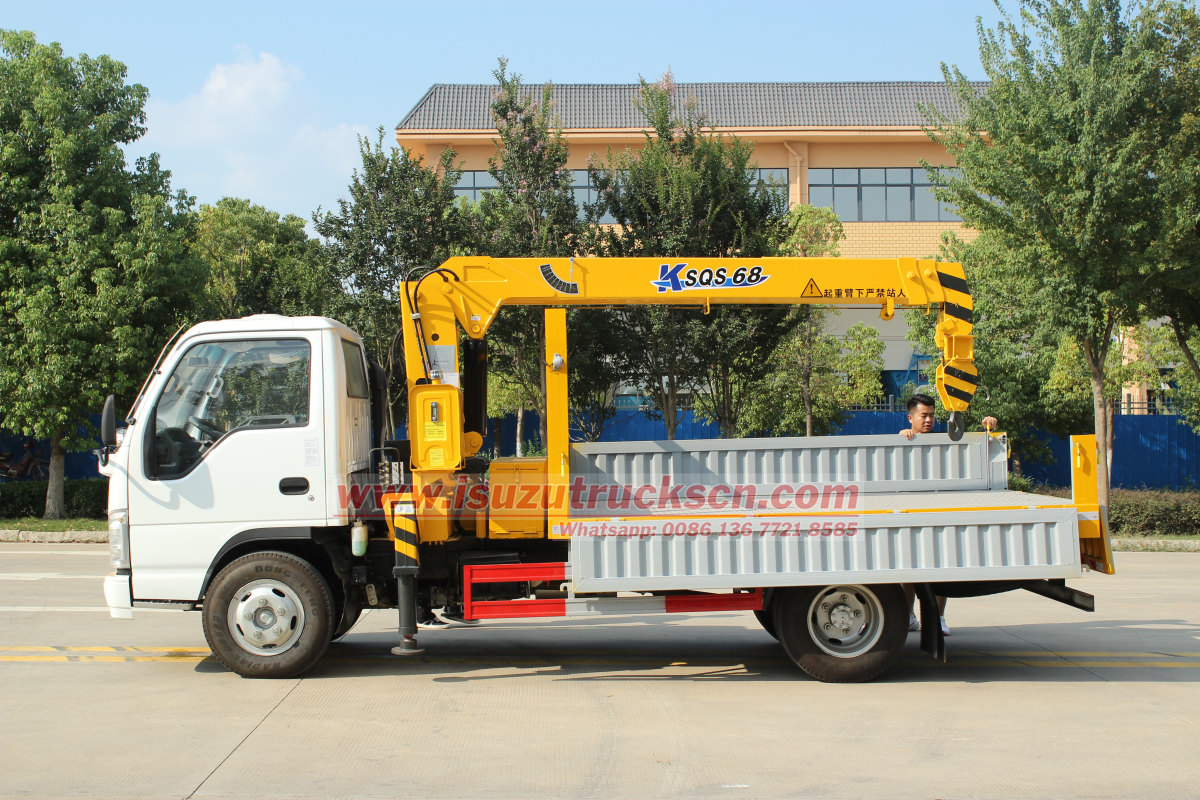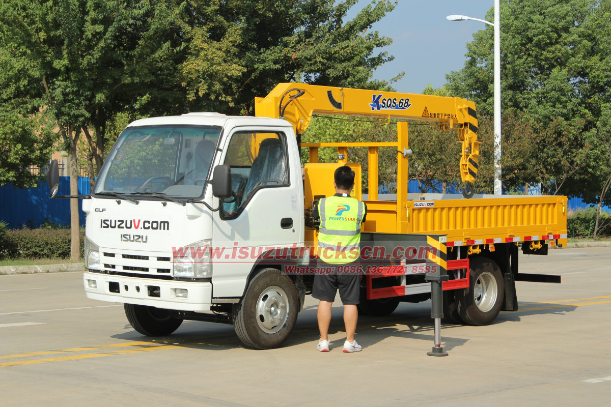 4x4 off road availableGuam 3ton boom crane truck Isuzu, also named Isuzu stiff boom crane truck or Loader crane truck Isuzu. This Isuzu cargo crane truck based on Isuzu ELF light duty truck chassis, 4KH1 120HP diesel engine, high performance 3.2ton crane, it's perfect to island customers. Guam municipal service upgrade: China's POWERSTAR TRUCKS customizes 3-ton boom crane to help island infrastructure efficient operation and maintenance