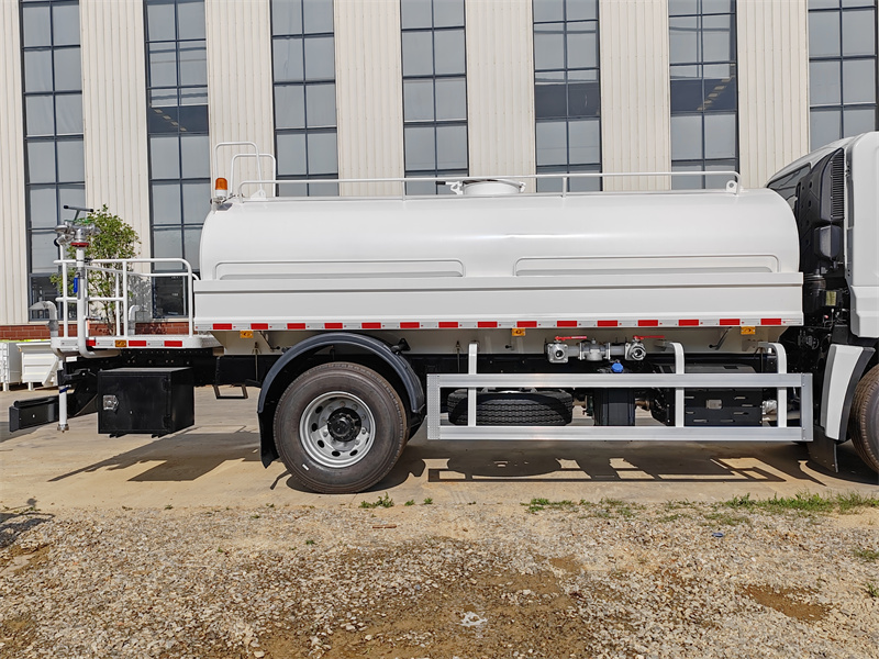 The upper part is a 10-cubic-meter carbon steel water tank. The carbon steel material has good strength and corrosion resistance, which can ensure that the water tank will not leak, rust or other problems during long-term use, ensuring the reliability and safety of the watering operation. A wave-breaking plate is set inside the tank to reduce the shaking of the water body during vehicle driving and improve driving stability. The capacity of the water tank is reasonably designed to meet daily watering needs without affecting the maneuverability of the vehicle due to its large size.