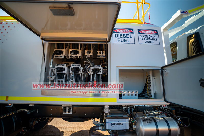 Various fuel lubrication tanksThe Isuzu 15 cbm fuel lube tanker truck is based on an upgraded and modified Isuzu GIGA 6X4 heavy-duty truck chassis. Designed specifically for engineering operations, mining machinery, logistics, and transportation, it integrates multiple functions, including fuel filling, lubricant distribution, coolant replenishment, high-pressure grease injection, and compressed air supply. Precision flow meters and independent pump units enable precise metering and delivery of various oil products. A tail screw air compressor provides 7-12 bar compressed air. The vehicle features an anti-static design and an intelligent monitoring system, making it convenient and safe to operate, meeting the needs of efficient service in complex working conditions.