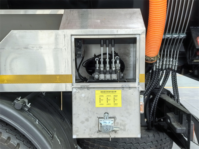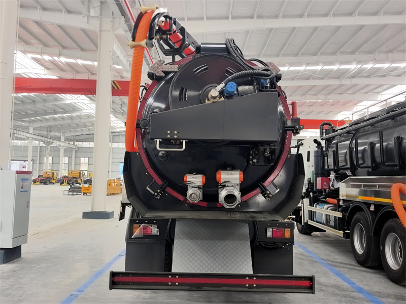 The superstructure is equipped with a 10m³ sewage tank and a 5m³ clean water tank, paired with a JUROP PVT 400 roots pump and a PINFL XO350 high-pressure cleaning pump to fulfill both sewage suction and pipeline dredging functions.Also equipped with a full tank alarm, pressure relief valve, secondary anti-overflow valve and rear door drain outlet, providing comprehensive safety protection.