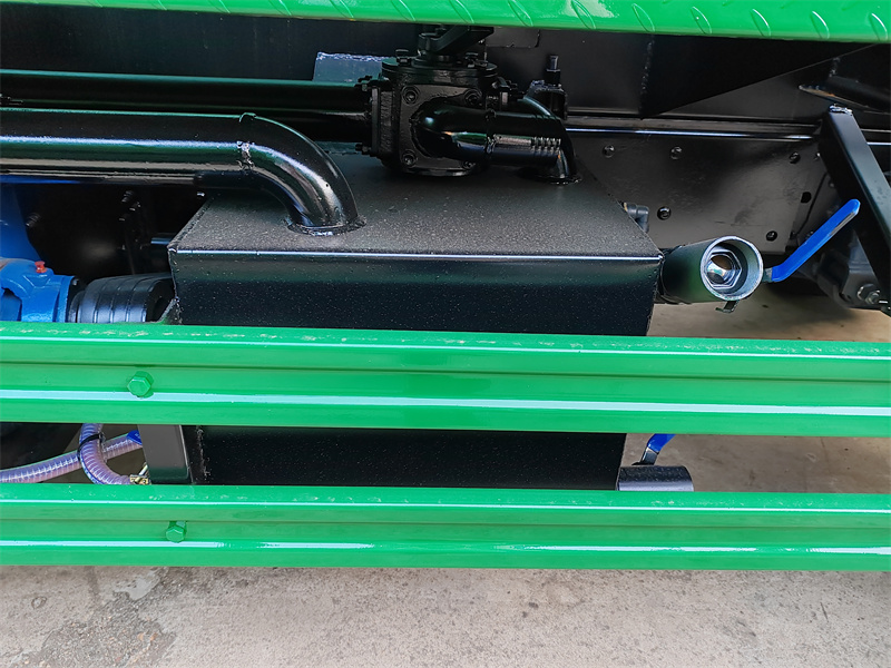 The Isuzu KV600 6 cbm vacuum tanker truck is based on the Isuzu KV600 chassis, with a 3365mm wheelbase. It is equipped with an Isuzu 4KK1N6HD engine and a MYY 6-speed transmission. The upper body consists of a 6 cubic meter carbon steel vacuum tank with anti-corrosion and rust-proof treatment. It features an SK-9 water ring vacuum pump, hydraulic oil tank, sight glass, ladder, overflow valve, tailgate discharge valve, and a driver-side hydraulic multi-way valve for manual control of tank lifting and tailgate opening.