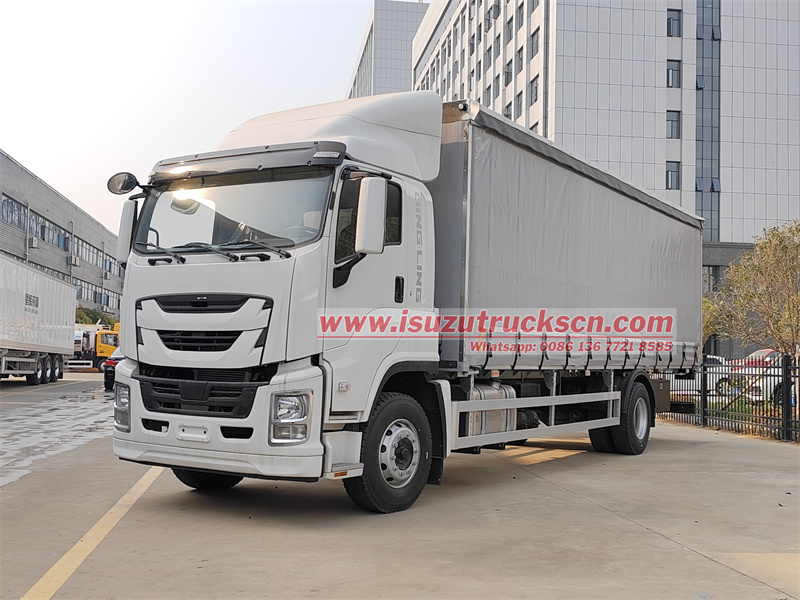Isuzu cargo van truck with PVC TarpaulinIsuzu 240 Hp engine tarpaulin transport vehicle is built on the powerful chassis of Isuzu GIGA series heavy trucks, inheriting its excellent load-bearing capacity, power performance and driving comfort. The tarpaulin design is flexible and can effectively protect the goods from wind and rain, and is convenient for quick loading and unloading. As a leader in the field of commercial vehicles, it perfectly combines the reliability of the Isuzu brand with the practicality of tarpaulin vehicles, providing efficient and durable solutions for logistics transportation, construction site operations and a variety of outdoor application scenarios.