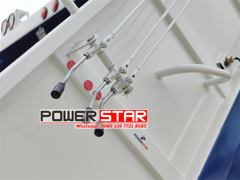 Manual operating lever on the right side of the tailgate: located on the right tailgate, it has three pull rods: rolling over, sliding plate, scraper, etc,