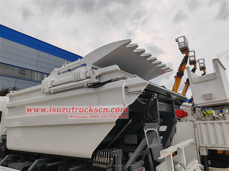 4X4, RHD avaiableIsuzu 4x2 hydraulic lifting rear loader truck is a high-level, leak-free self-loading garbage truck. It adopts a ship-shaped box body with high structural strength and good sealing. It adopts high-level loading technology. The garbage port of the box body is at the top of the box body, which prevents secondary pollution such as garbage leakage and sewage leakage during garbage collection and transportation. It is mainly used for garbage collection in narrow streets, township streets, communities and other places where medium and large vehicles are difficult to enter. The bottom of the ship-shaped box body has no openings around it, and the bottom plate and side plates are arc-shaped to reduce welds and reduce the risk of leakage.