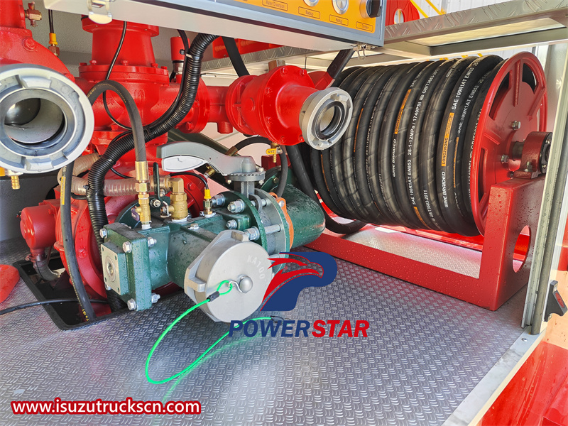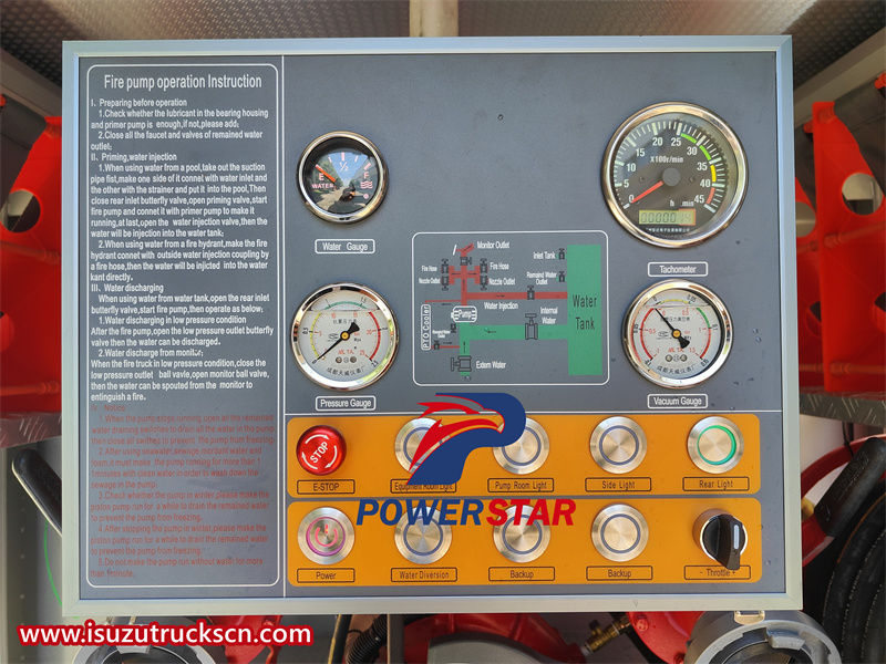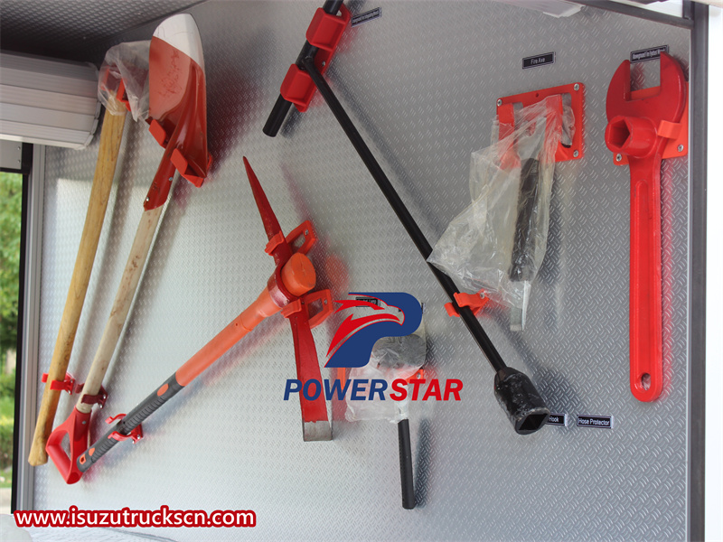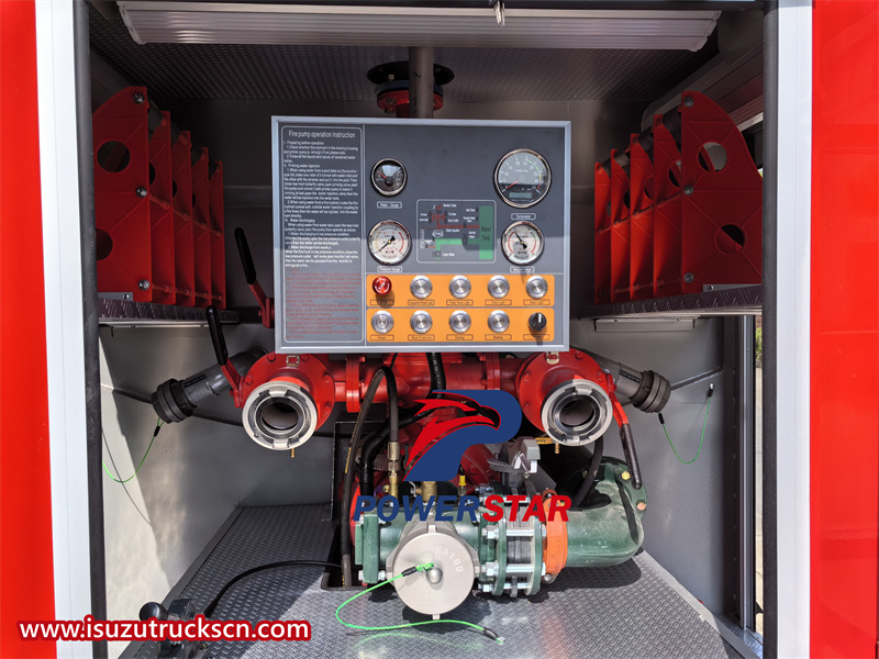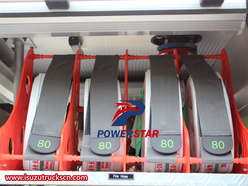 The design of the Isuzu fire truck prioritizes the safety, functionality and ease of use of firefighters. The double-row design layout of the cab ensures that firefighters can enter the vehicle in an orderly manner, improving the reaction speed and efficiency of firefighting and rescue. At the same time, the equipment can be used quickly and efficiently, so as to respond quickly in emergency situations. In addition, the ergonomic cab design provides comfort and visibility for staff, improves operational efficiency, and ensures that firefighters can perform their duties with optimal efficiency and safety. It is equipped with an advanced braking system, including hydraulic oil brakes, which provide excellent braking force and control. The truck also has power steering, making it easier to maneuver in small spaces or on rough terrain. In addition, the truck's body and frame are made of high-strength materials to withstand the rigors of firefighting operations, ensuring long-term durability and reliability. Its sturdy and durable structure and good maneuverability can easily cross busy streets or crowded environments in the city to ensure the smooth execution of firefighting tasks.