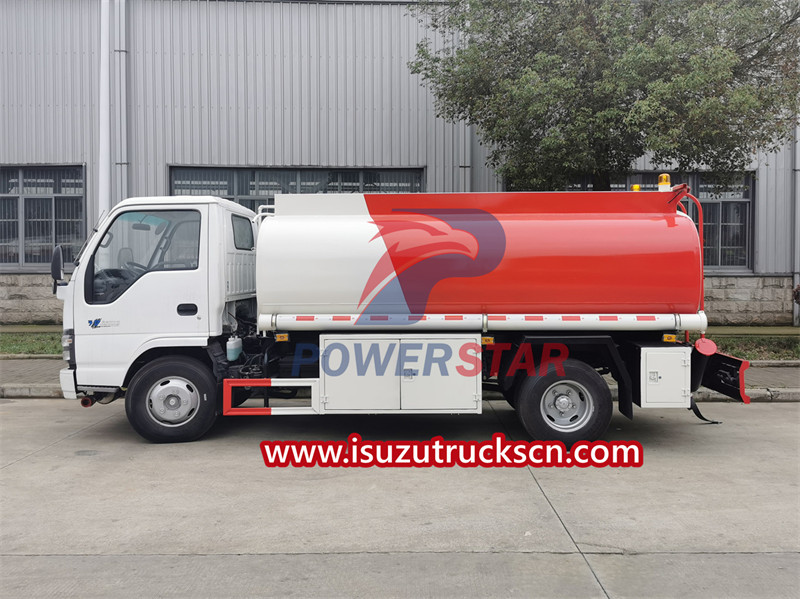 ISUZU fuel truck is modified based on the Isuzu 600P chassis and is equipped with an Isuzu 4KH1 engine, which gives the vehicle continuous driving force. At the same time, with the optimization of the suspension system, it ensures that the vehicle can maintain stable driving in various road conditions, allowing you enjoy a comfortable driving experience. In order to ensure ride safety, the fuel tanker truck has specially strengthened the body structure to improve overall rigidity and anti-collision capabilities. A strong body improves vehicle safety by better retaining its integrity during a collision.
