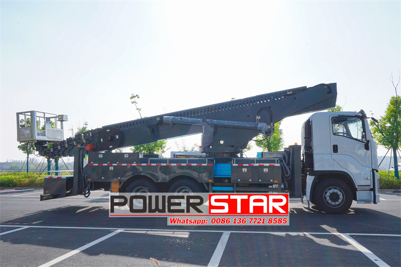 Isuzu FVZ 56m aerial work vehicle is designed to meet the needs of aerial work. With its excellent performance and stable operating platform, it is widely used in construction, bridge maintenance, power installation and other fields.