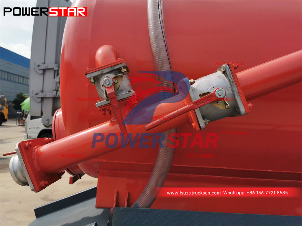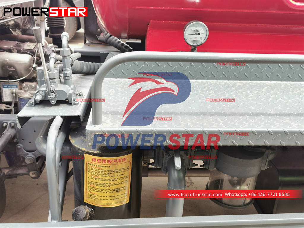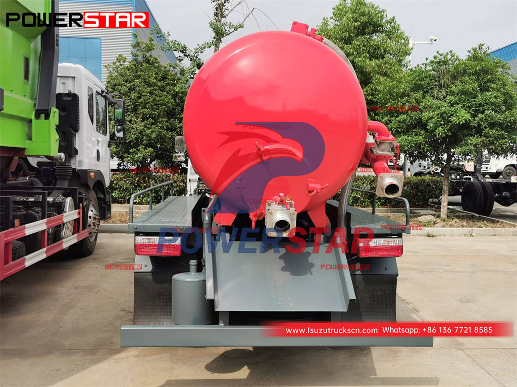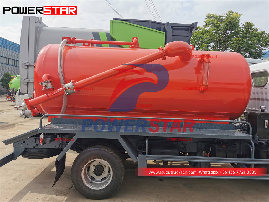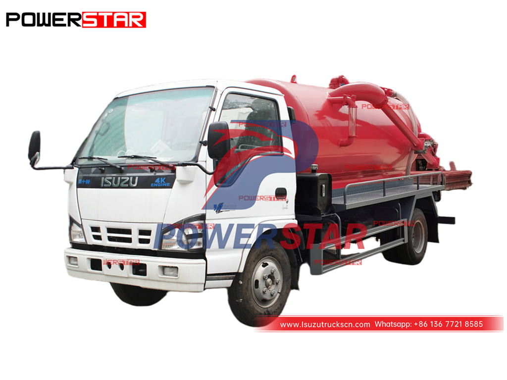 ISUZU 5000L sewer vacuum truck (also called Isuzu vacuum cleaning truck, septic pump truck, sewer cleaner truck, cesspool emptier) is is used for suction, transportation and dumping soil and mud from various sewer man-hole, water wells and sediment.