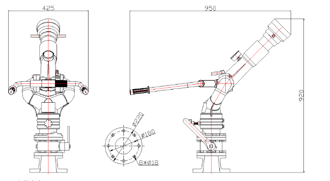 • Working pressure: 0.8 MPa, which indicates the maximum working pressure that the fire monitor can withstand.