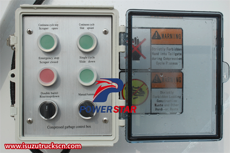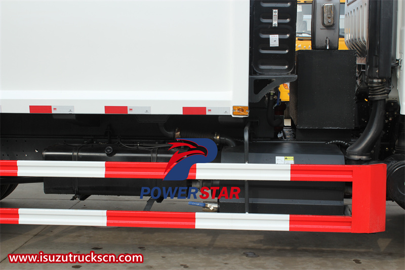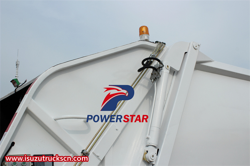 The Isuzu 700P waste compressor truck produced by POWERSTAR mainly uses the special devices such as the garbage carriage, packer, shovel, hydraulic system,to put the garbage into the tank and crush or flatten the garbage.It is convenient, efficient.It has automatic repeated compression function, and peristaltic compression function, and it has high compression ratio, high loading capacity, automation, good sealing and other advantages.
