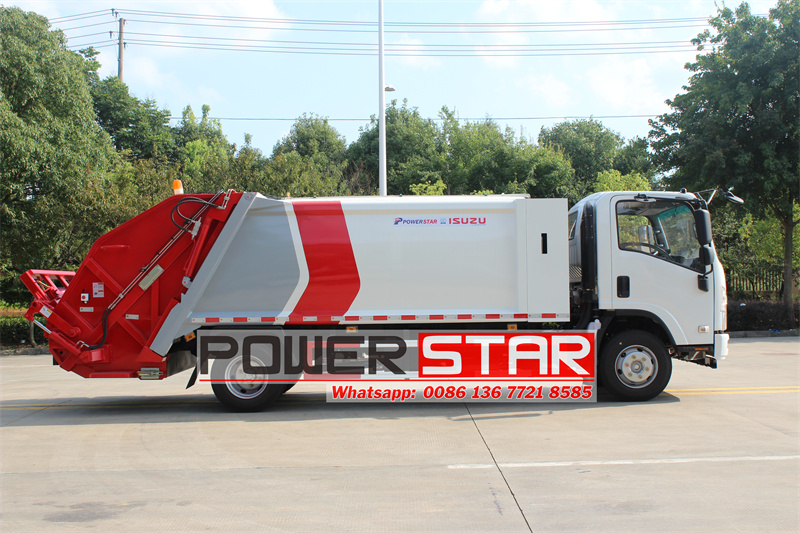The ISUZU new NPR compression garbage truck has become an important tool for urban sanitation and garbage treatment with its high efficiency, environmental protection and reliability. Its advanced hydraulic system and automated operation mode not only improve the efficiency of garbage disposal, but also provide strong support for the sustainable development of the urban environment. Which are loaded by sanitation engineers along neighborhood streets. The trash is loaded into a hopper in the back of the truck of rear loaders. Hydraulic cylinders operate the compacting mechanism, which takes the trash out of the hopper and places it into the body of the truck. Different types of garbage trucks can be designed and produced based on ISUZU GIGA truck chassis that hold different amounts of waste. The truck that comes through your neighborhood can hold anywhere from 5 tons to 22 tons of waste.