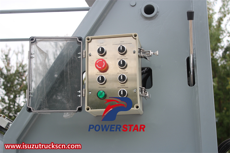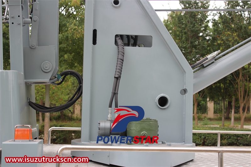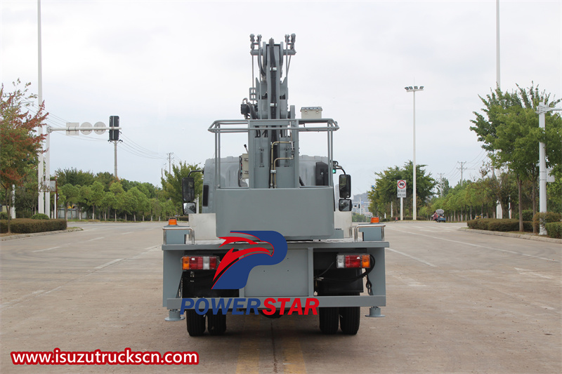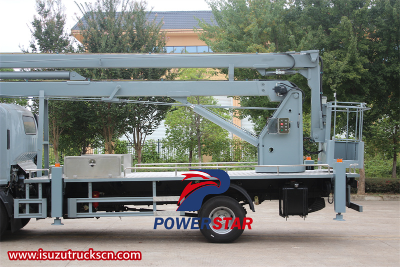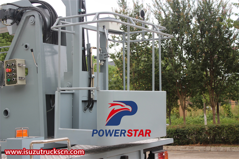 The 3-section folding arm is a unique feature of the ISUZU KV100 aerial working truck, providing a greater reach and precise positioning. The boom is made of high-strength steel and has multiple sections that can be folded or extended as needed. The boom can easily reach high-altitude working points while maintaining a stable operating platform to ensure the safety of operators.