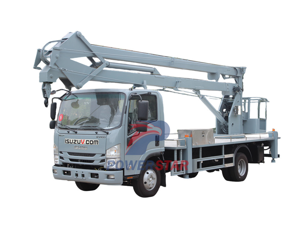 ISUZU KV100 14m Knuckle Boom Aerial Platform Truck is a professional vehicle designed for aerial work. It combines the reliability and advanced technology of the Isuzu brand to provide efficient and safe working solutions for multiple industries such as power, communication, construction, and gardening.
