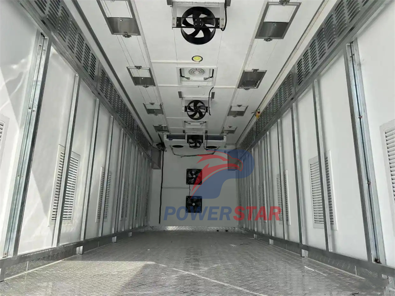 3. Temperature control system: Equipped with an intelligent temperature control system, it can monitor the temperature in the carriage in real time and automatically adjust the working state of the refrigeration unit according to the preset value to ensure that the temperature is always in an appropriate range.