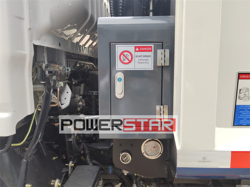 Inside the truck body, a powerful compactor system ensures that waste is tightly compressed, maximizing loading capacity and reducing the number of trips required.