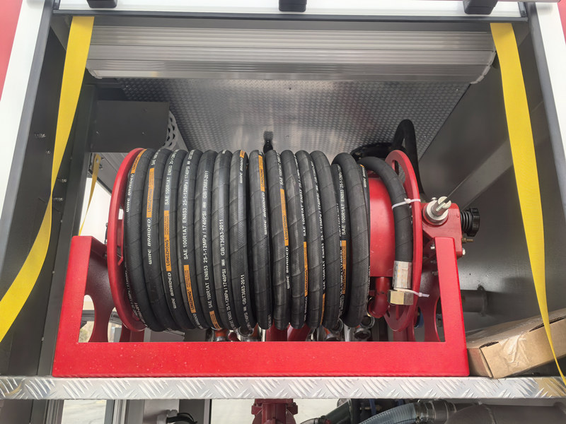3. The ISUZU FTR fire engine truck is equipped with a 30-meter high-pressure fire hose reel with a working pressure of 1.0MPa, featuring quick-connect couplings and an auto-locking mechanism. The reel allows rapid deployment and retrieval, working in conjunction with a handheld nozzle for precise close-range firefighting, making it particularly suitable for confined space fire suppression with efficient and user-friendly operation.