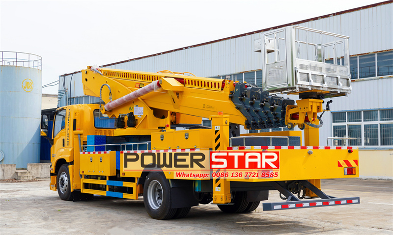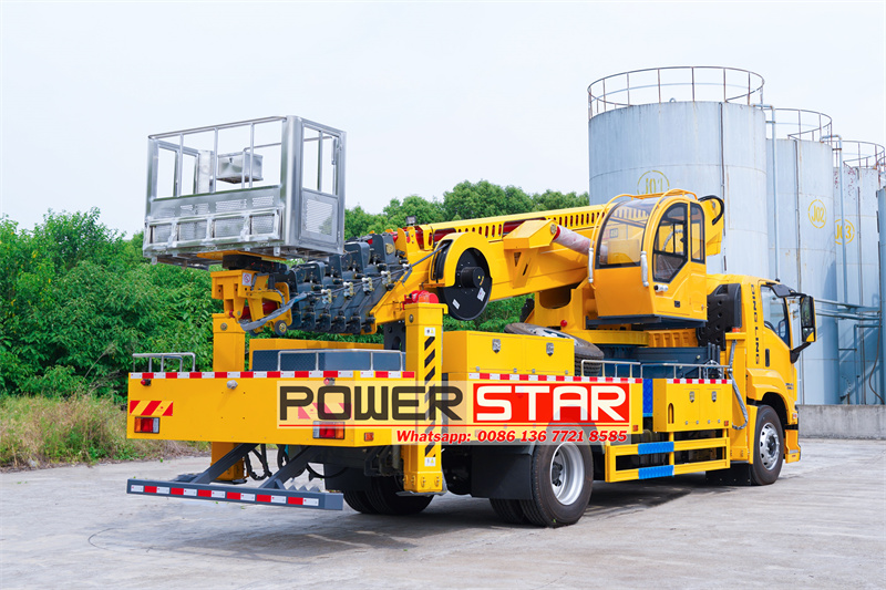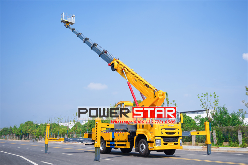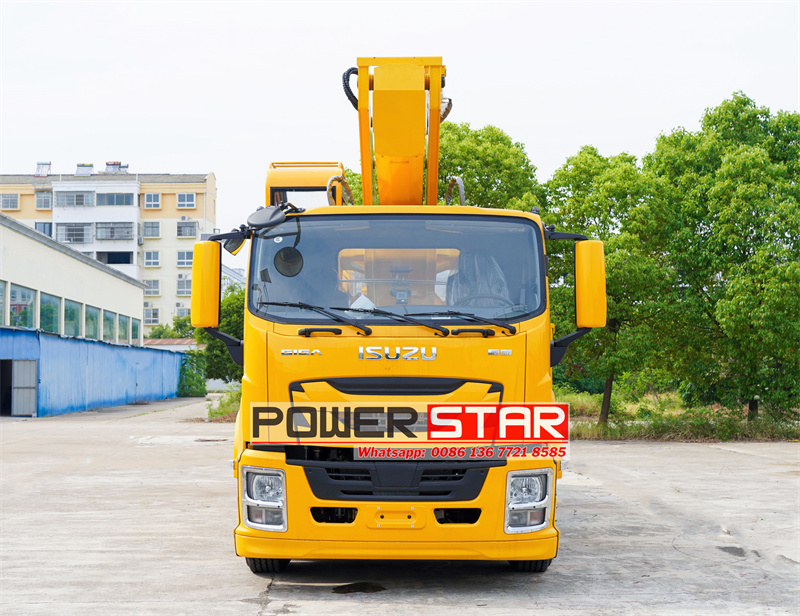 3. Intelligent safety control system and multiple safety protection technologies constitute the safety protection of the Isuzu FTR aerial platform truck, automatic limit system to prevent exceeding the working range. Manual emergency pump to ensure the safe evacuation of personnel in extreme cases, emergency stop device of the working platform, leakage protection device, automatic interlocking device for getting on and off the vehicle. These systems together build a comprehensive safety protection network.