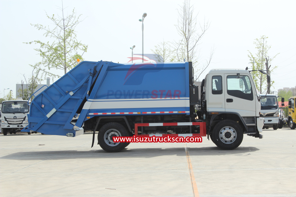 high standard painting working for 10 yearsPhilippines Government Introduces Brand New Isuzu FVR 240hp Garbage Compactor 18000kg to Improve Environmental Hygiene in Metro Manila. FVR Isuzu Compressed garbage truck is mainly used for the collection and transport of a one-time non-recyclable municipal solid waste, commercial waste, and also used for non-toxic, non-corrosive and non-radioactive industrial garbage.It is produced with Germany technology. It's with the features of high system pressure, large compression force, high volume rate and large loading capacity, which could make loading capacity increase 5-7 times.With the function of high automatic degrees, quick loading speed, convenient, safe and reliable operation, and preventing re-pollution.