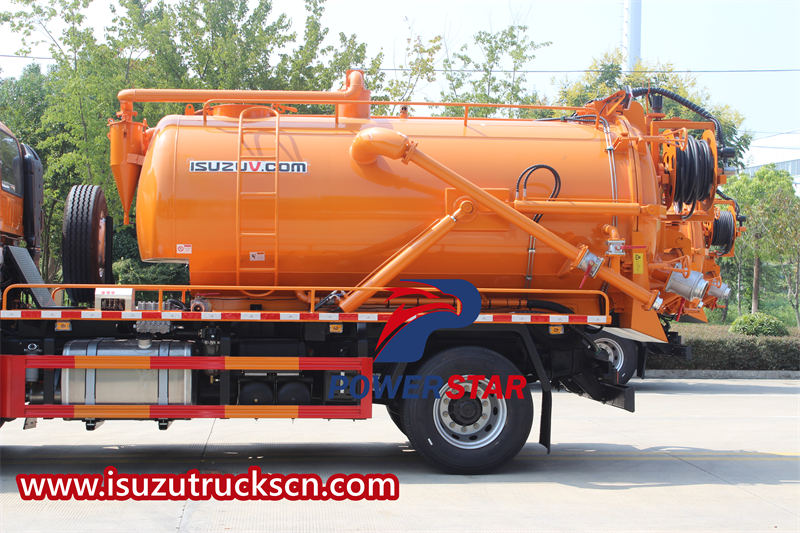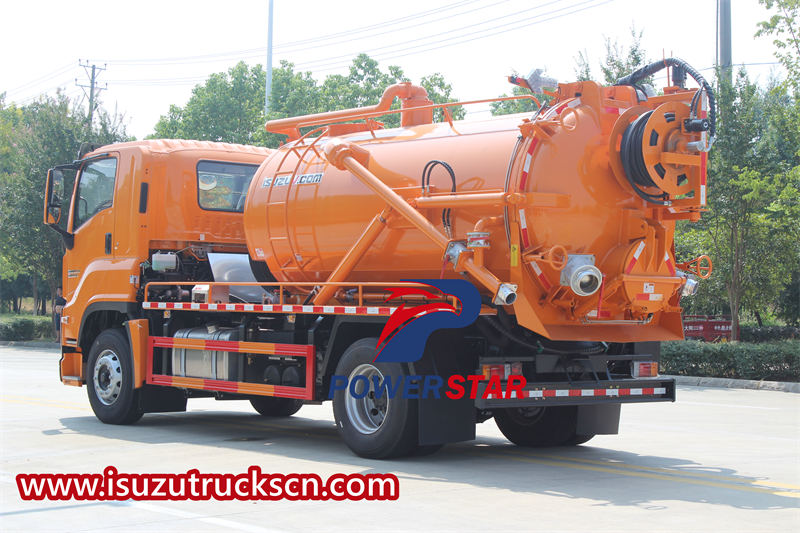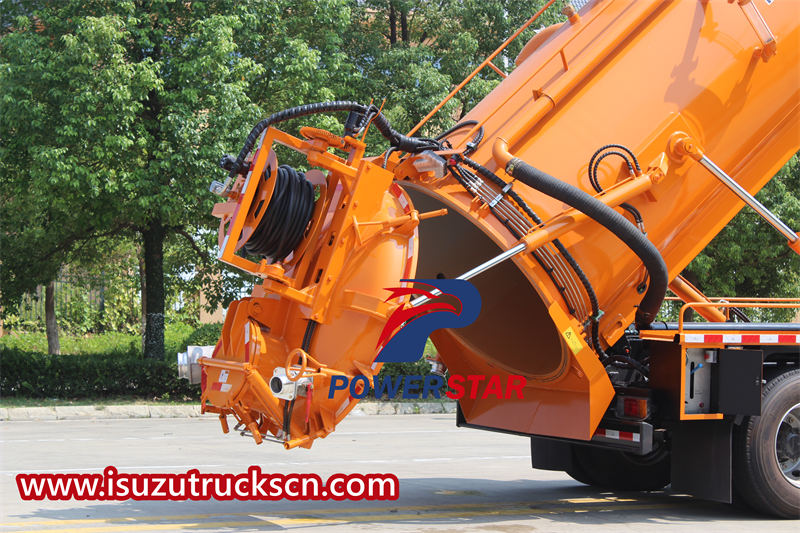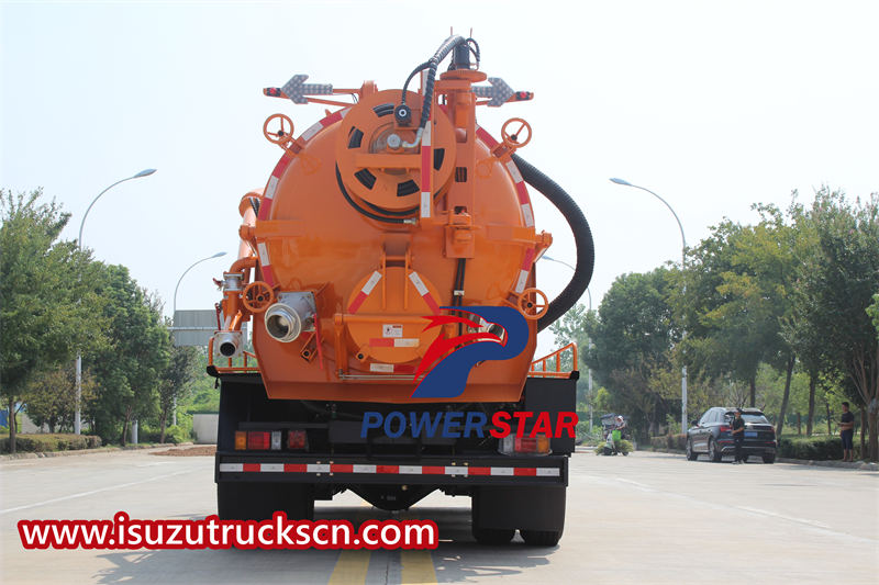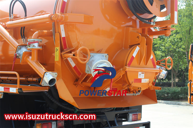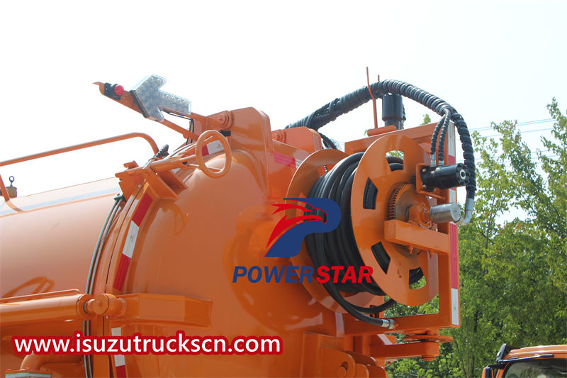 The ISUZU FVR combination vacuum truck exhibits excellent operational performance. It is equipped with an 8-meter-long sewage suction pipe and a hydraulic reel with a 60-meter high-pressure hose and 10 nozzles, meeting the cleaning needs of different scenarios. Key performance indicators include a suction time of ≤5 minutes and an effective suction depth of ≥8 meters, fully demonstrating the vehicle's advantages in operational efficiency and capability.