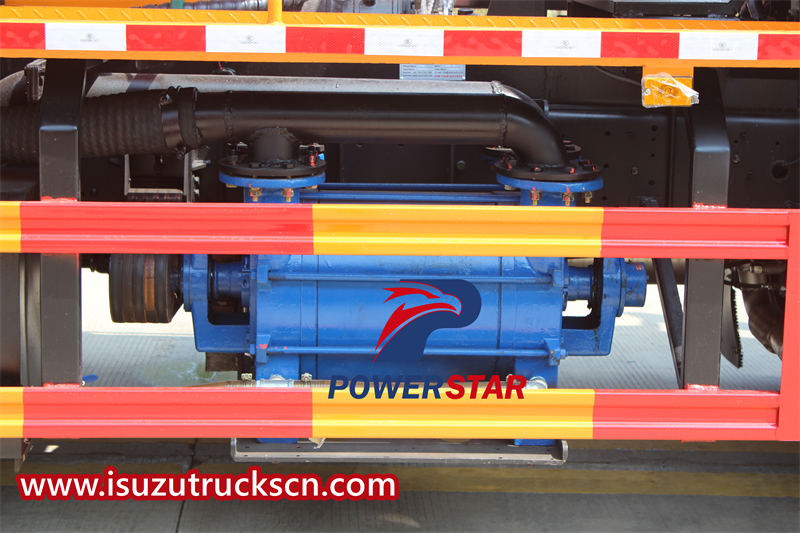 The ISUZU combination sewer jetting truck is equipped with a 6,000-liter vacuum tank and a 2,500-liter water tank. Both tanks are made of Q235 carbon steel material with a thickness of 6 mm, ensuring the durability and safety of the tanks. The tank lifting angle is ≥45°, facilitating dumping and cleaning. Additionally, the vehicle is equipped with efficient pump systems such as a water circulation vacuum pump and a high-pressure plunger pump, as well as auxiliary equipment such as oil-gas separators, water-gas separators, ensuring smooth and safe operations.