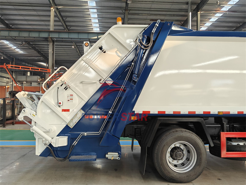 In addition to the electric control box, the tailgate right side of the Isuzu FVR GIGA compression garbage truck is also equipped with a manual control box. The manual control box is mainly used as a backup control method when the electric control system fails. It adopts a simple and reliable manual operation mechanism, and the driver can open and close the tailgate by manually rotating or pushing and pulling the control lever. This design not only improves the reliability and safety of the vehicle, but also provides the driver with more flexible control options.