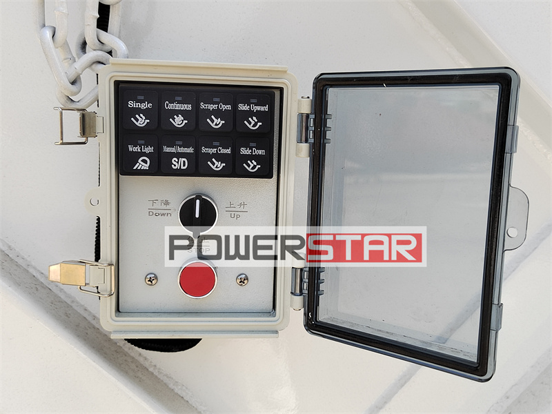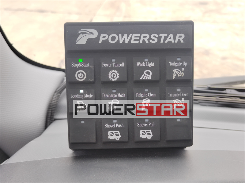 The tailgate electric control operation box is located at the rear of the garbage truck compartment, which is convenient for ground staff or drivers to operate outside the vehicle. There are multiple control buttons and indicator lights on the operation box to control and monitor the operation.