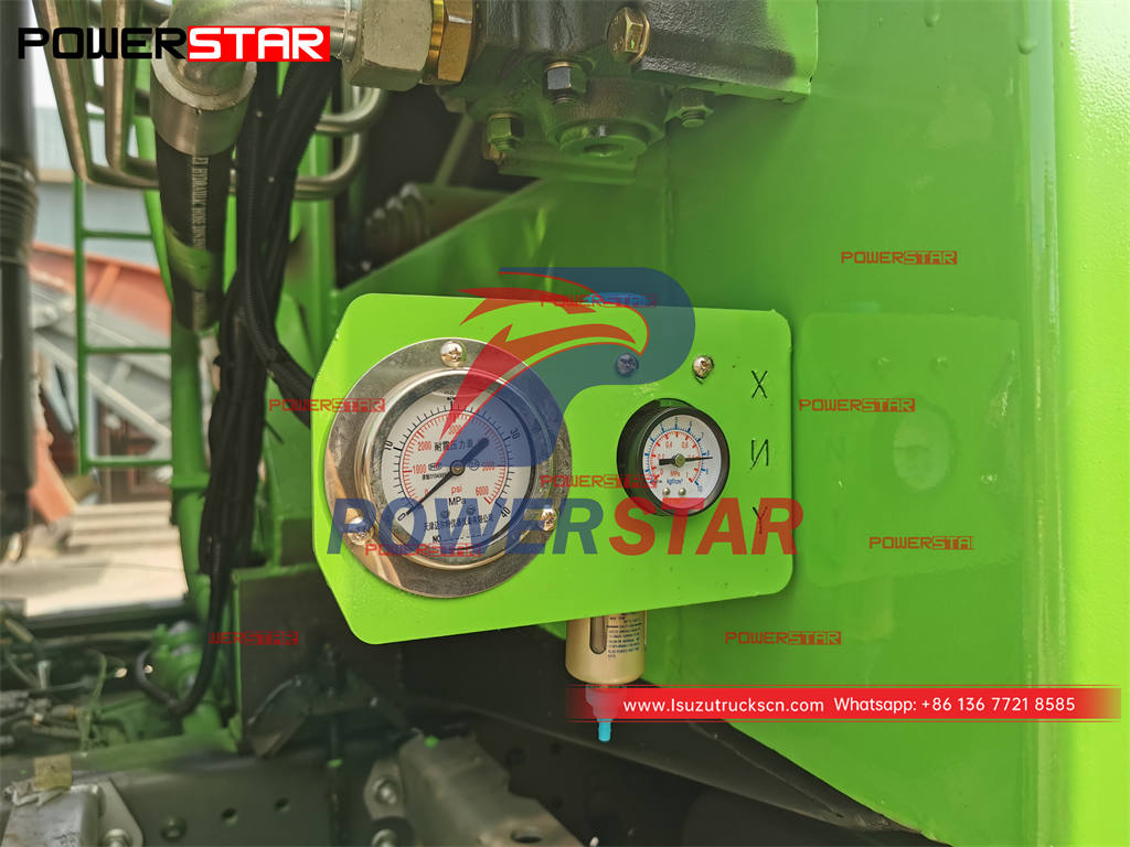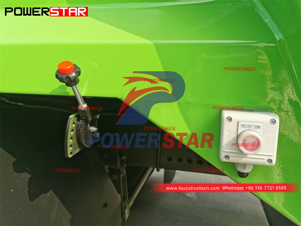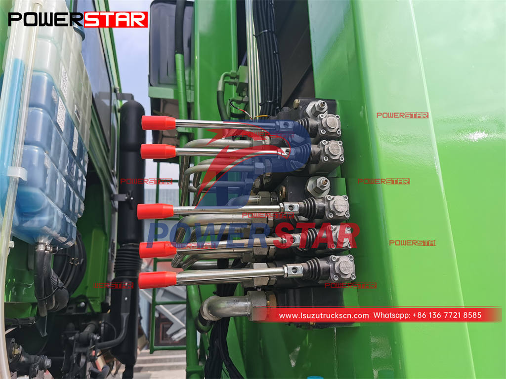 1, Dust bin lifting system (with any option) 2, Rear vision camera 3, Italy imported multi-way valve 4, Optional stainless steel waste water tank |