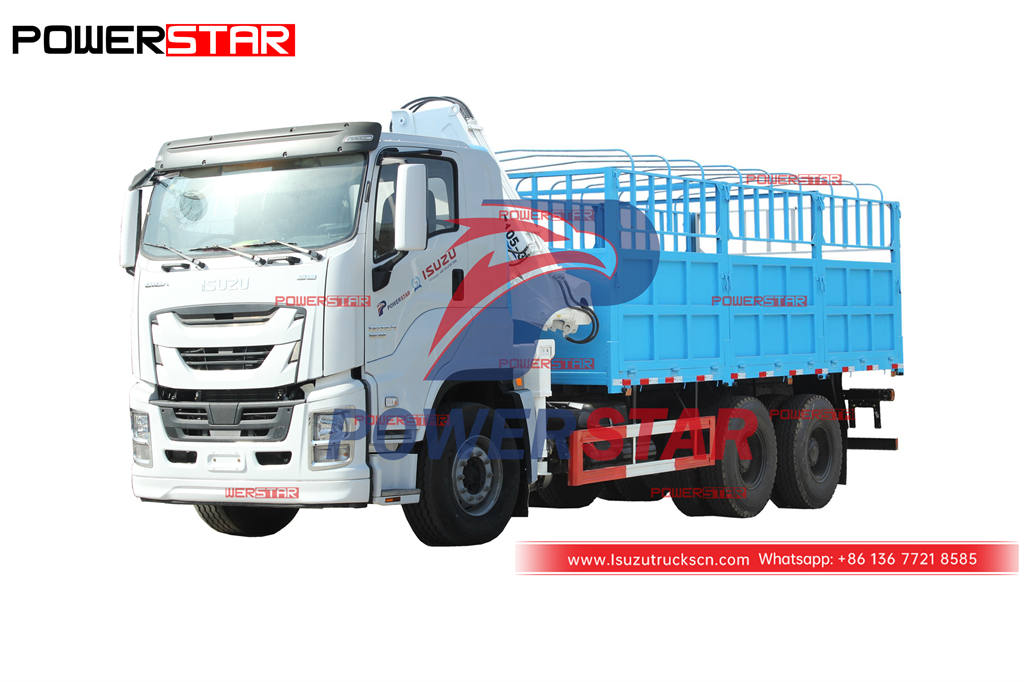 ISUZU GIGA Truck Mounted Crane (also called ISUZU truck with crane, ISUZU Cargo Crane Truck) suitable for multiple work applications, such as electric line maintenance and construction, transmission and distribution, tree trimming and other related uses. Articulating cranes, which are also known as knuckle boom cranes, are designed to be lightweight and highly maneuverable for maximum payload while working in tight spaces.