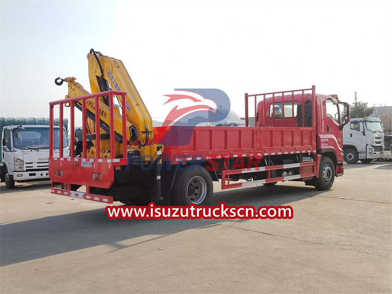 ISUZU truck-mounted crane (also called ISUZU boom crane truck, ISUZU truck with crane) is a new type of efficient lifting and transportation equipment that integrates lifting and transportation. Because of its unique characteristics of being able to lift and carry cargo, and being flexible and maneuverable, it is widely used in fields and places such as transportation, telecommunications and electricity, civil construction, cargo yards and docks, warehouses, and relocation within buildings. The ISUZU truck-mounted crane has the comprehensive functions of self-loading, self-unloading, and self-transportation. It can also be equipped with additional devices to have special functions such as grabbing bars, bulk materials, drilling, and manned working buckets, which greatly expands its use functions, truly realizing the use characteristics of one vehicle with multiple functions and efficient maneuverability.