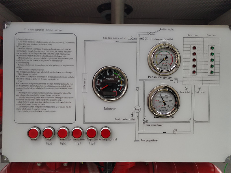 The fire pump is one of the core components of a fire truck. The ISUZU 600P fire pumper truck is equipped with a CB10/30 type constant pressure pump, with a pressure of ≥1.0 MPa, a maximum suction height of 7 meters, a flow rate of 30 L/S, a rated speed of 2800 r/min, and a suction time of ≤50 s. Its powerful pumping capability enables the fire truck to quickly draw water and deliver the extinguishing agent to the fire scene, providing strong power support for fire-fighting work.