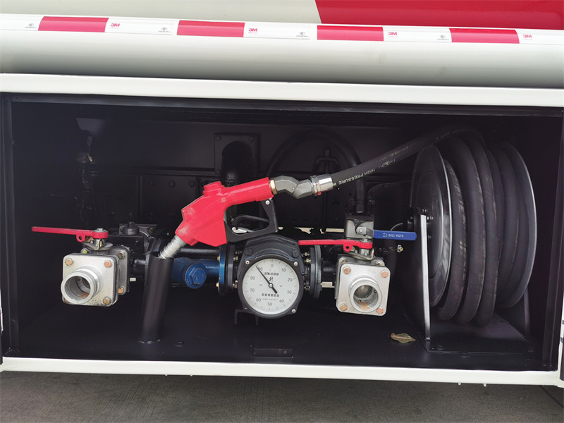 4. Safety devices: In order to ensure safety during transportation, ISUZU fuel tanker truck is equipped with a series of safety devices. These devices include overflow valves, emergency shut-off valves, pressure gauges, thermometers, and liquid level gauges.