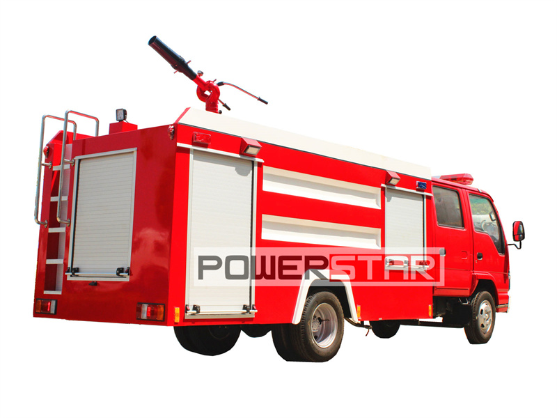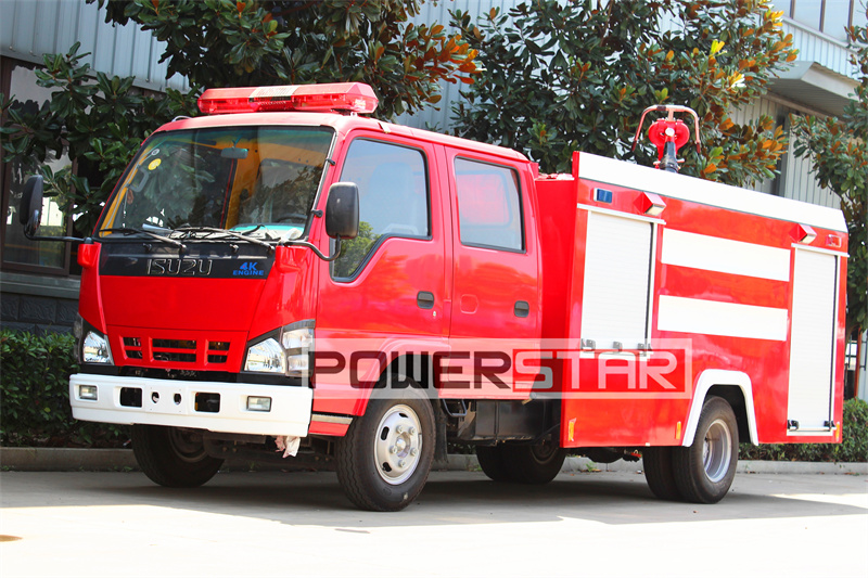 1500L water tank+4 pcs nitrogen gas bottleThe Isuzu tanker fire truck is a high-performance, multi-functional emergency rescue vehicle equipped with a 3 cubic meter water tank, a wheelbase of 3360 mm, approach and departure angles of 20 degrees and 13 degrees respectively, ensuring good passability. The Isuzu NKR tanker fire truck has a maximum speed of 90 km/h. The chassis model is Isuzu NKR, which complies with Euro VI emission standards. It is equipped with an Isuzu 4KH1CN6LB model 2999 cc diesel engine with an output power of 88 kilowatts.