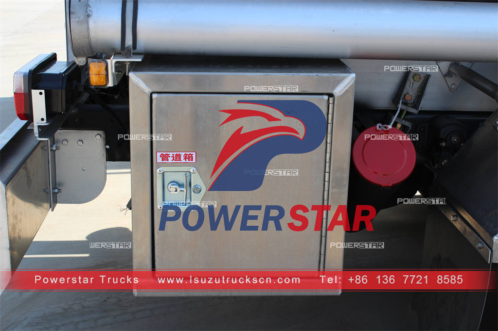 ISUZU stainless steel fuel truck (also called ISUZU mobile fuel bowser, ISUZU refueling truck, ISUZU stainless steel diesel tank) is designed for the transport and storage of gasoline, light diesel oil, kerosene and other fuels which boast no corrosive action on the tank body, oil pump and oiling machine, etc.