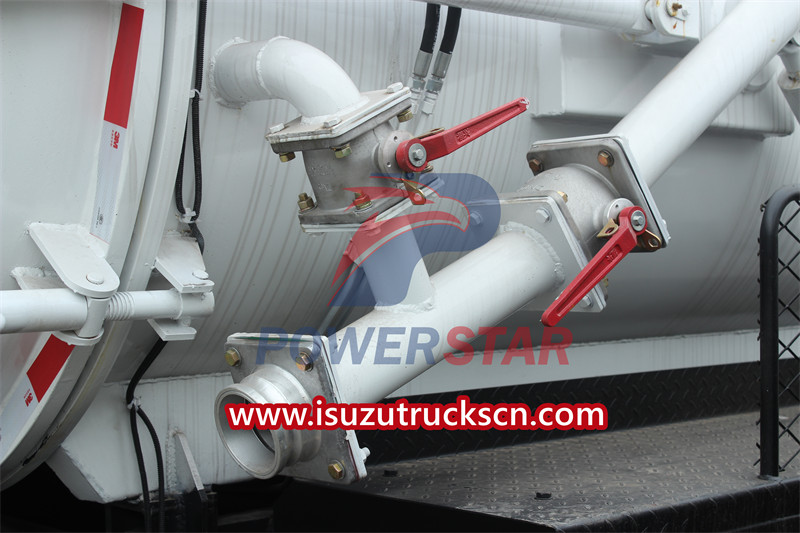 Isuzu sewage suction trucks realize self-priming and self-discharging through the principle of vacuum. Specifically, when the sewage suction pipe is immersed in the liquid level, the air in the tank of the sewage suction truck is sucked, causing the pressure inside the tank to be lower than atmospheric pressure. Under the action of atmospheric pressure, liquid dirt enters the tank. In addition, Isuzu sewage suction trucks are also equipped with high-quality sewage suction pipes and ball valves to ensure sealing during the sewage suction and discharge processes. These features enable ISUZU septic suction trucks to quickly and efficiently clean and transport various wastes, improve work efficiency and reduce labor intensity.