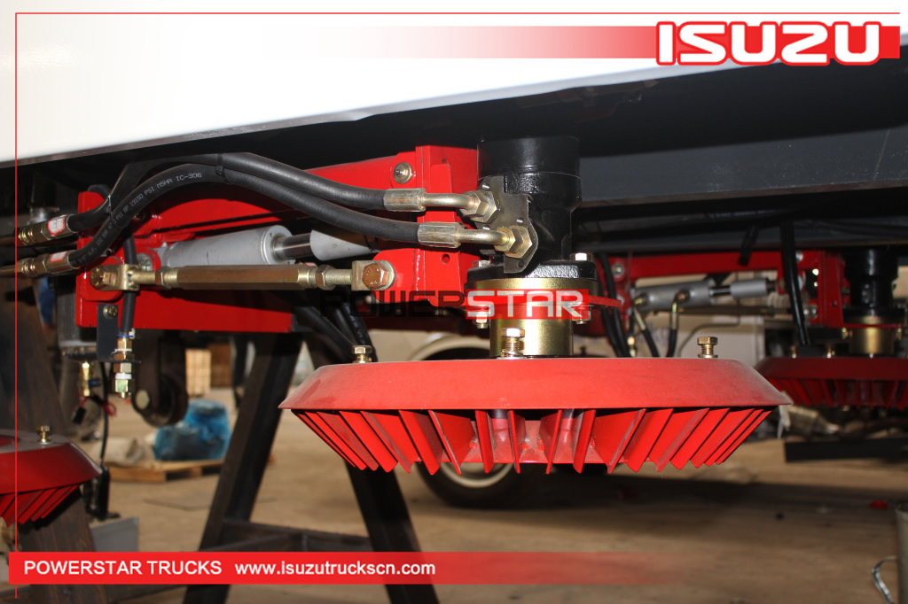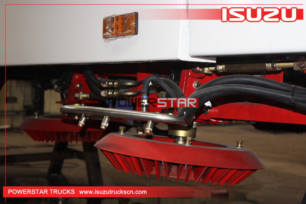 1, Front brushes or Front spray bar 2, High pressure road washing system. 3, Italy imported hydraulic motor 4, Optional stainless-steel water tank |