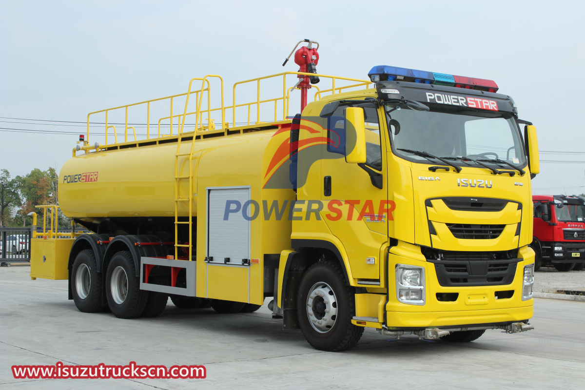 new or used Isuzu giga water fire tender, also called as The Giga Isuzu Fire truck, including Giga chassis water tank fire truck, foam fire truck, dry powder fire truck, remote water supply fire truck, elevating fire truck, ladder climbing fire truck, etc. Fire trucks are usually equipped with steel ladders, water guns, portable fire extinguishers, self-contained breathing apparatus, protective clothing, demolition tools, first-aid tools and other equipment. Some of them also carry large fire-fighting equipment such as water tanks, water pumps, foam extinguishing devices and so on.