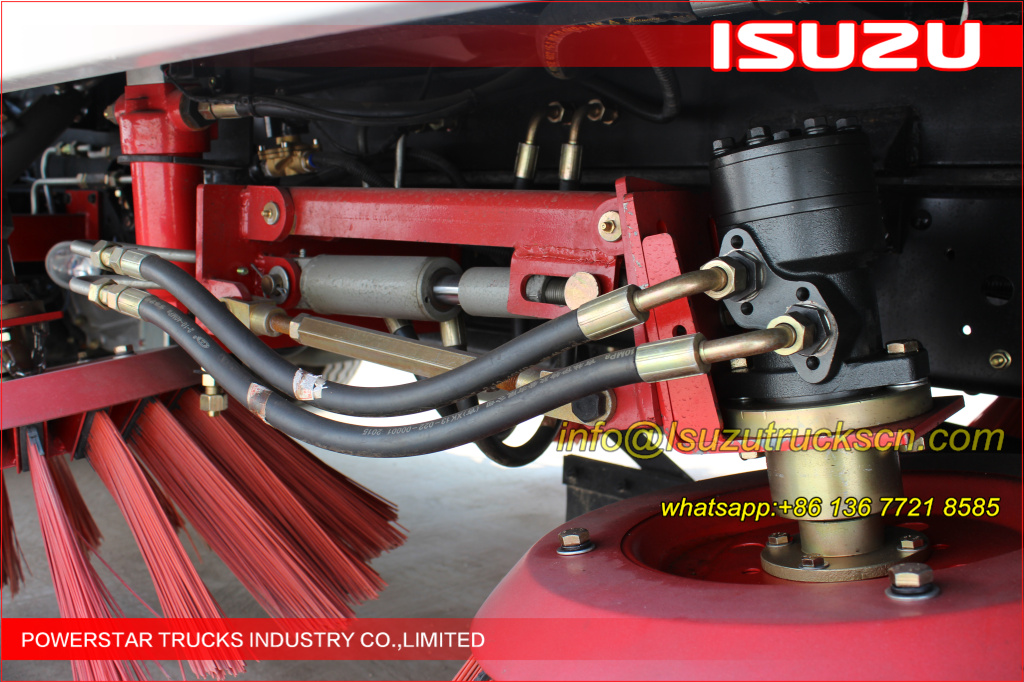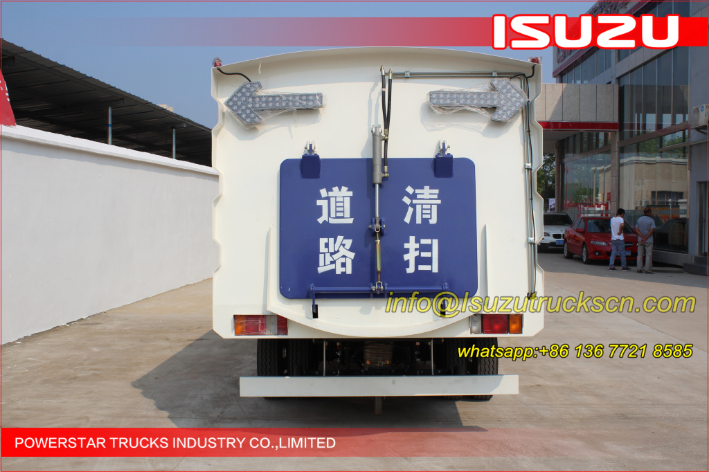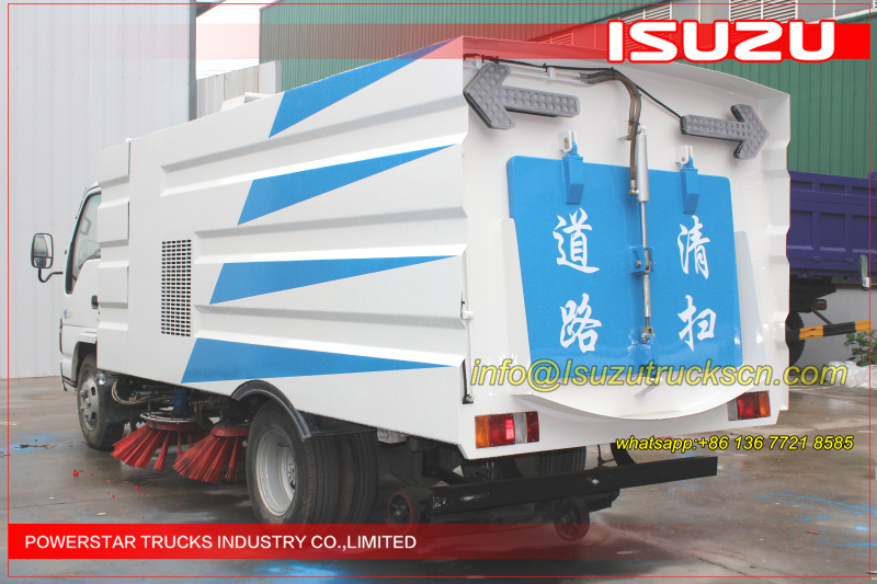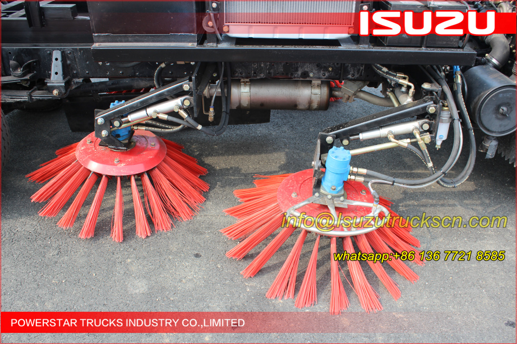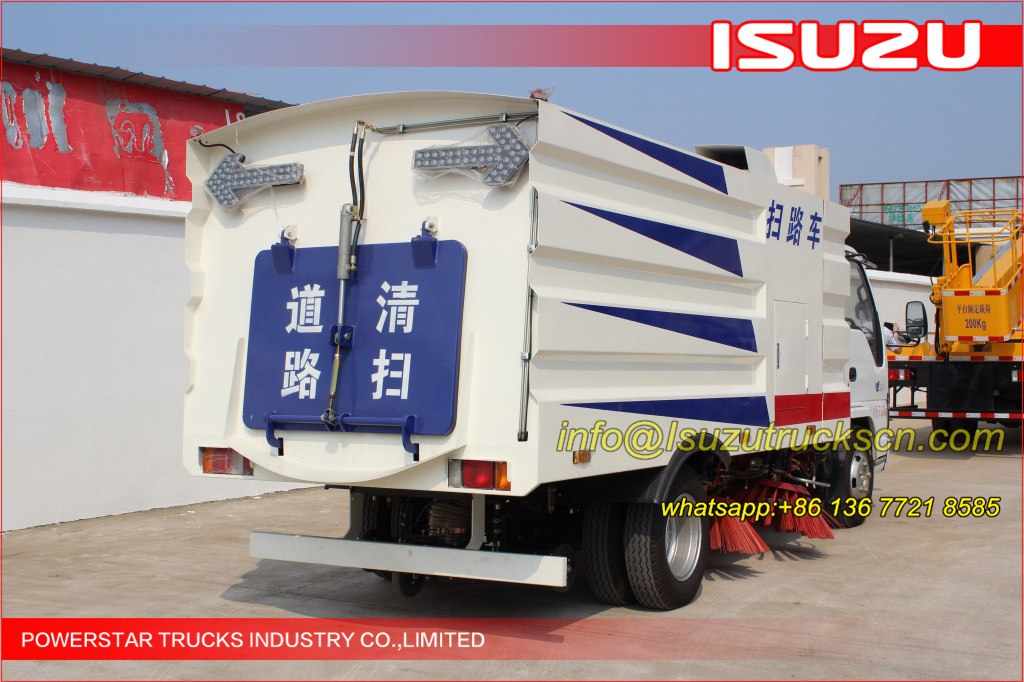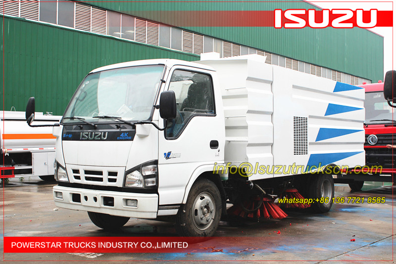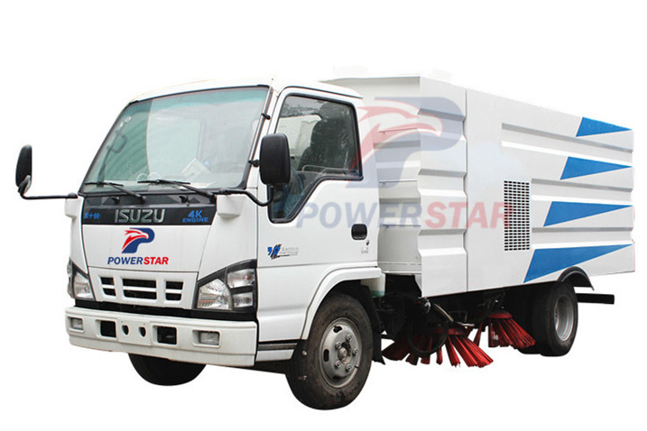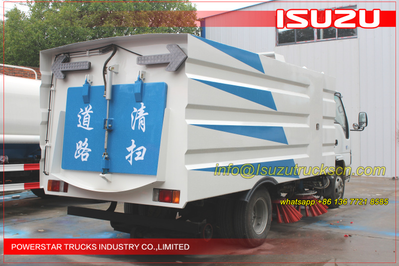 Road sweeper truck ISUZU (also street sweeper truck Isuzu, Isuzu truck mounted road sweeper, brush road sweeper, vacuum road sweeper, wet road sweeping vehicle) This Isuzu road sweeper truck has a simple and proper structure with four brushes in the middle and a suction port at the back part of the vehicle. The efficient suction system makes low noises when the vehicle is working. The whole vehicle is stable in performance.
