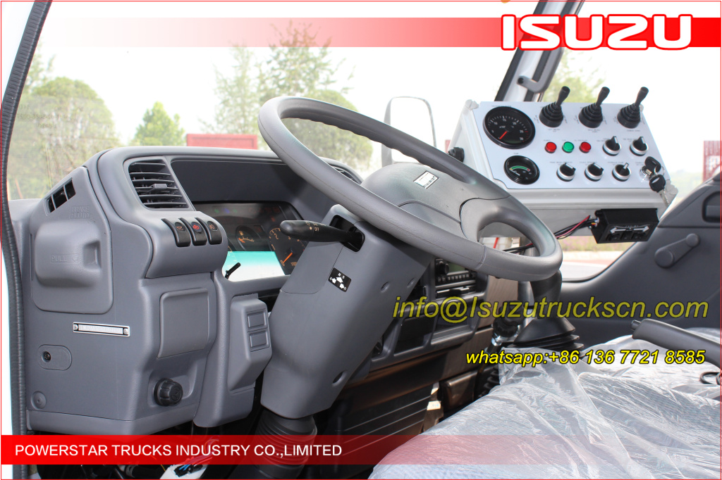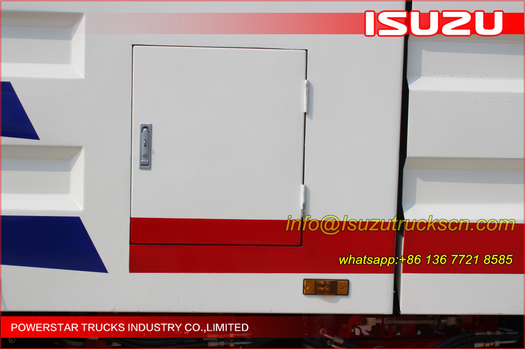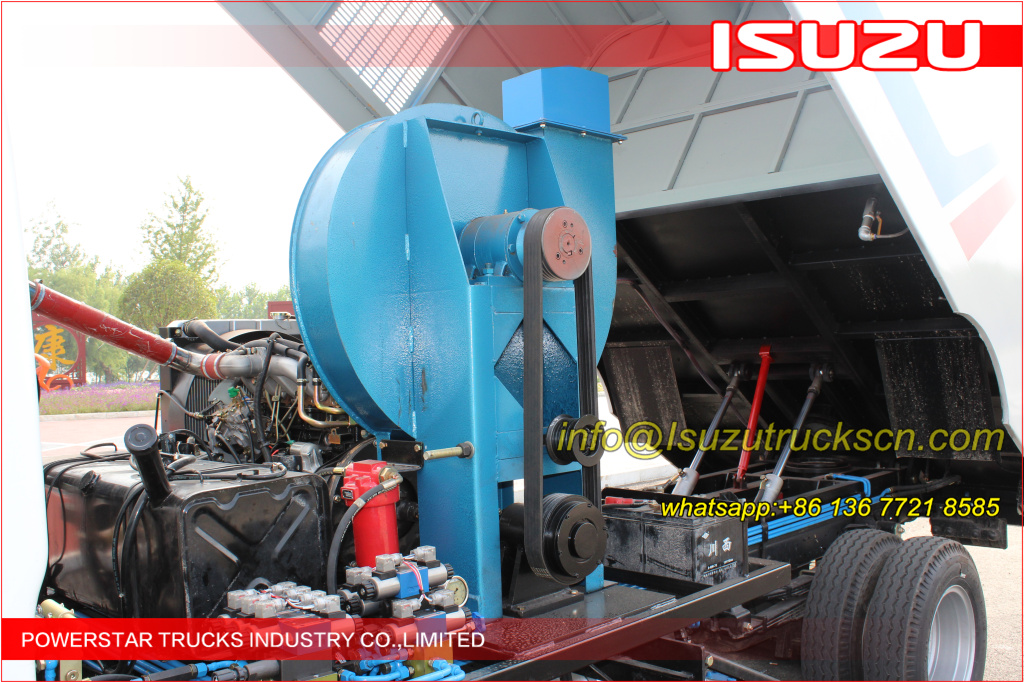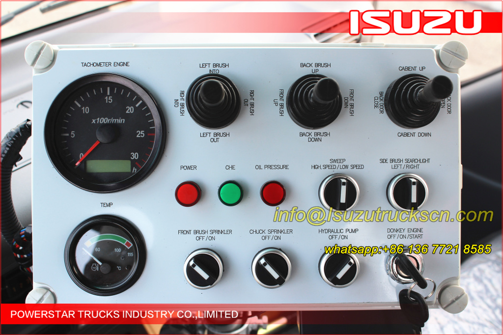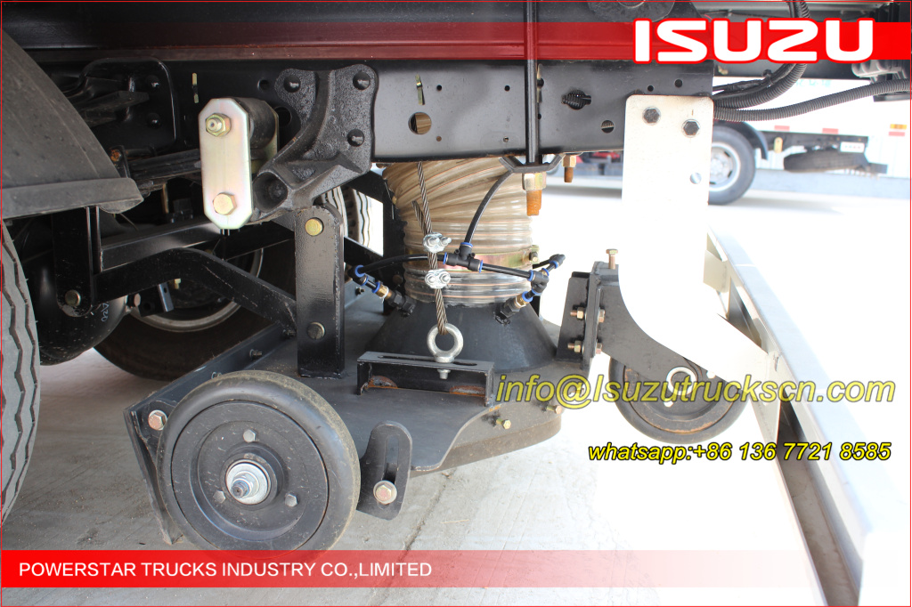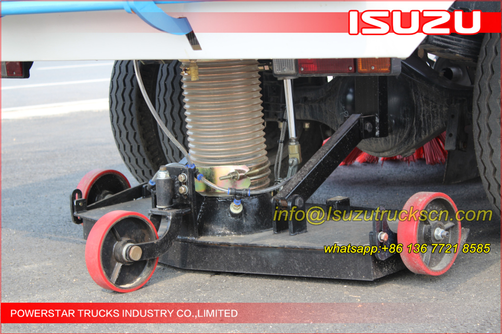 Road sweeper truck ISUZU (also street sweeper truck Isuzu, Isuzu truck mounted road sweeper, brush road sweeper, vacuum road sweeper, wet road sweeping vehicle) This Isuzu road sweeper truck has a simple and proper structure with four brushes in the middle and a suction port at the back part of the vehicle. The efficient suction system makes low noises when the vehicle is working. The whole vehicle is stable in performance.