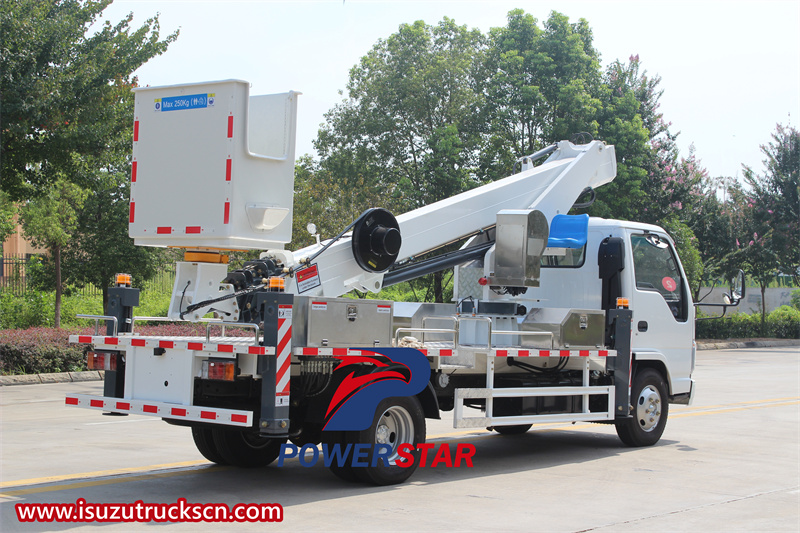 This single man basket manlifter truck Isuzu is the embodiment of ingenuity and innovation from renowned heavy-duty vehicle manufacturer POWERSTAR. With its rugged construction, advanced features and superior performance, the Isuzu single man basket lift truck is the ideal choice for those seeking a reliable and efficient solution for lifting and transporting heavy objects.
