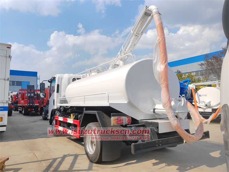 Tank capacity can be customizedThe Sludge Fecal Suction Truck Isuzu is primarily used to collect and transport liquid waste (feces, sewage, slurry, etc.) from septic tanks, sewers, and stormwater wells. Equipped with a Yifeng SK-6 water ring vacuum pump, it achieves a maximum suction speed of 6 m³/minute, and its 6-meter telescopic suction boom allows for deep septic tank access. The vehicle features both gravity-fed and vacuum-pressurized discharge modes, and a large-diameter tail valve enables rapid dumping within 3 minutes. It is also equipped with safety features such as a relief valve and pressure gauge. This easy-to-operate truck boasts powerful suction, combining efficient suction, stable transportation, and environmentally friendly discharge, making it a must-have for municipal sanitation departments.