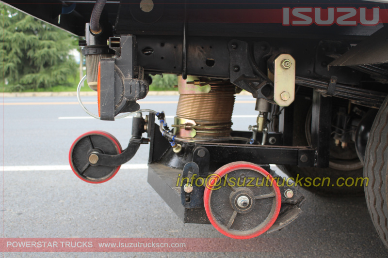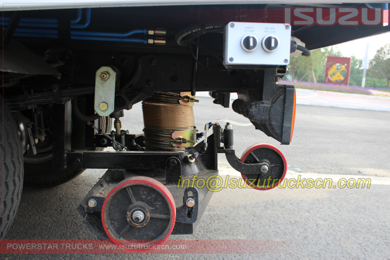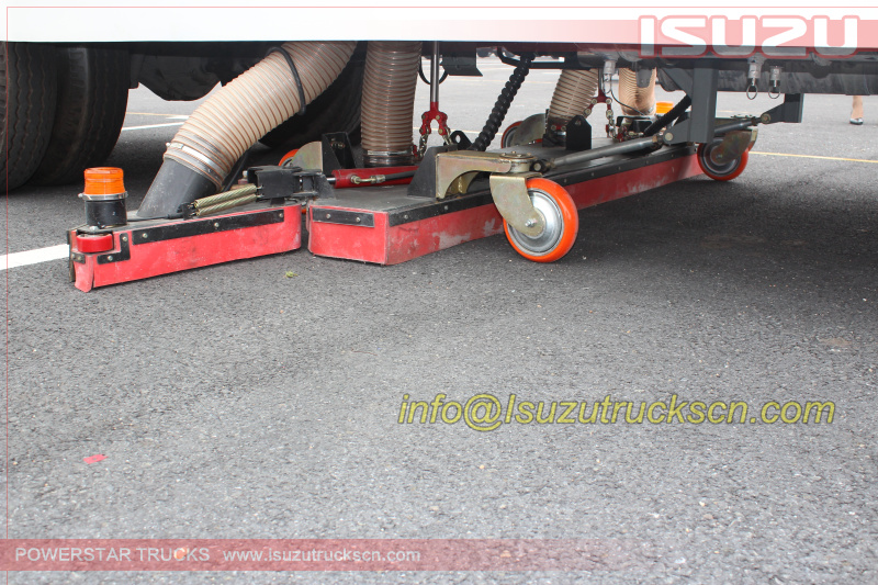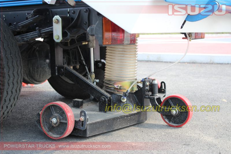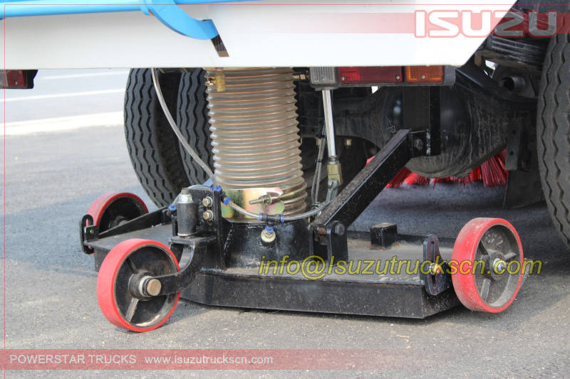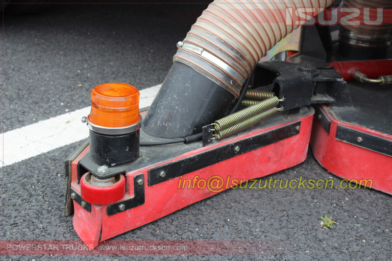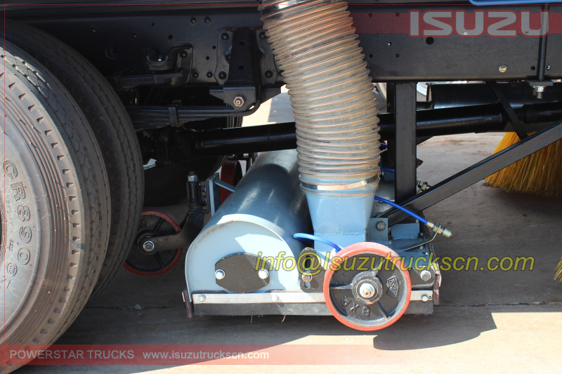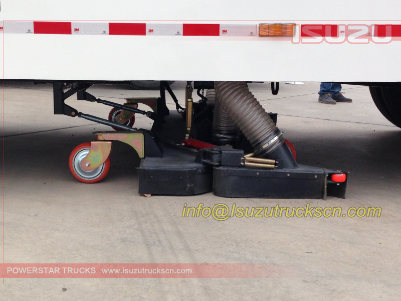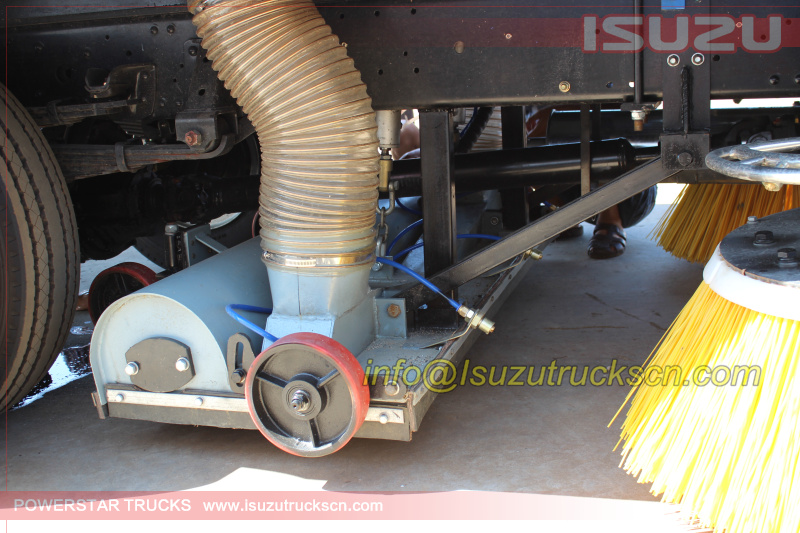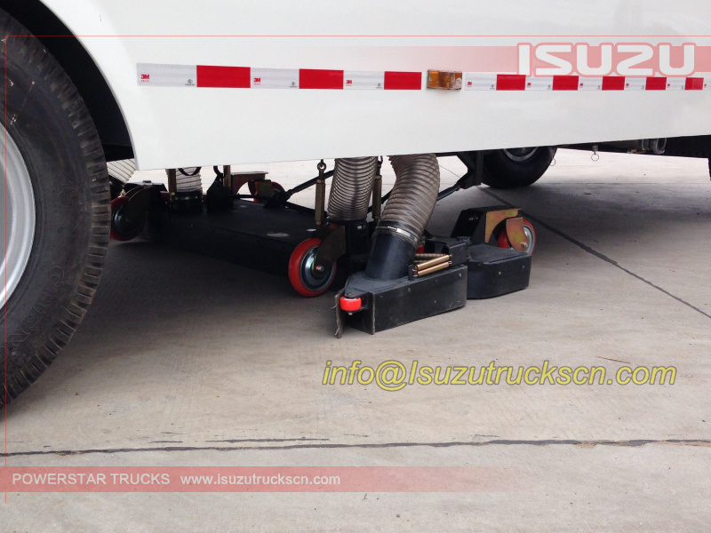 Sweeper truck suction port (also called as road sweeper suction mouth, air typre sweeper dust control system, suction nozzle for street sweeper trucks ) This sweeper truck has a simple and proper structure with four brushes in the middle and a suction port at the back part of the vehicle. The efficient suction system makes low noises when the vehicle is working.