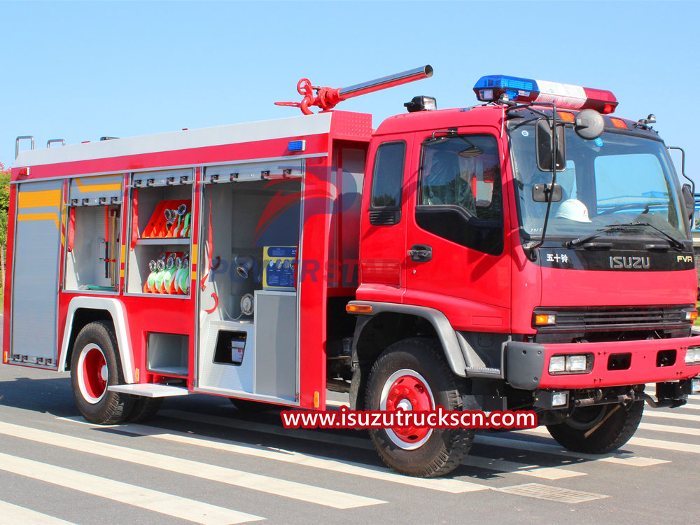 ISUZU Fire Truck is one of the special vehicles necessary for firefighting tasks. It is widely used in fire rescue, emergency response to hazardous chemical leakage, personnel evacuation, medical rescue and other fields. With its unique functions and design, Isuzu fire truck has become an important piece of equipment in fire rescue work. This article will introduce the types and functions of Isuzu fire truck. 1. Types of Isuzu fire engine: 1). Isuzu fire water tanker truck: Isuzu water tank fire trucks are mainly used to transport and store fire-fighting water sources. It is usually equipped with a large-capacity water tank, and delivers water to the fire scene through pipes and sprinklers to carry out fire-fighting operations. Isuzu fire water tankers can also be equipped with a pressurized pump as needed to provide high-pressure water spray or dry powder spray and other fire extinguishing media. 2).Isuzu firefighting foam truck: Compared with ordinary fire trucks, Isuzu foam fire trucks have added foam liquid storage and injection devices, which can produce rich foam liquid for use in fires that are difficult to extinguish. The foam liquid can form a protective film, effectively inhibit the spread of flames, and has a certain thermal insulation effect to protect the safety of personnel and equipment. 3).Isuzu dry powder fire extinguisher: Isuzu dry powder fire extinguishing fire trucks are usually equipped with dry powder fire extinguishing devices, which can spray dry powder into the fire scene to quickly extinguish the flames. Dry powder fire extinguishing trucks are suitable for various types of fires and can form a large amount of fire extinguishing media in a short period of time to control the fire within a controllable range. 4).Isuzu fire ladder truck: The Isuzu ladder fire truck is a special firefighting vehicle that uses telescopic ladders to fight fires in places such as high altitudes, deep wells, and narrow spaces. Ladder trucks are usually equipped with retractable ladders that can reach heights of tens or even hundreds of meters. A water spray device can also be installed on the basket of the ladder for high-altitude fire extinguishing. 2. Structure and function of Isuzu fire engine The structure of Isuzu fire engine can be divided into several parts such as body, power system, water tank system, foam device and communication system. 1). Body: The body of the Isuzu fire engine is usually made of high-hardness steel plates and has strong impact resistance. There are multiple lockers and tool boxes on the body for storing fire extinguishing equipment and rescue tools. The car body can also be equipped with a light warning device to send out warning signals to remind traffic drivers to be vigilant. 2). Power system: Isuzu fire engine is usually equipped with a powerful power system to ensure that it reaches the accident scene quickly. The power system generally consists of a diesel engine or a gasoline engine with high power and torque. 3). Water tank system: The water tank system of Isuzu fire engine is its main fire extinguishing device. Water tanks are usually made of special materials that are resistant to high pressure and have capacities ranging from a few thousand liters to tens of thousands of liters. The water tank is equipped with a water pump and a water spray device, which can transport water to the fire scene and spray water to extinguish the fire. 4). Foam device: Foam device is one of the important components of Isuzu fire engine. It consists of a foam liquid storage tank, a foam injector and a control system. Through the control system, the concentration and injection volume of the foam liquid can be adjusted to adapt to different types of fires. 5). Communication system: Isuzu fire engine is equipped with advanced communication equipment to ensure timely communication with the command center and other rescue forces. Communication systems usually include radios and walkie-talkies, which can maintain contact during combat and obtain important instructions and information. 3. How to use and precautions for Isuzu fire tender 1. When using Isuzu fire tender, you must first become familiar with the various components and functions of the vehicle. Understand the operating principles and usage of the vehicle, and master the correct operating steps to ensure that the fire truck is put into use quickly and efficiently in emergency situations. 2. Isuzu fire tender must be kept in good condition at all times while driving. Maintain and maintain vehicles in a timely manner to ensure the normal operation of each component. Regularly inspect important components such as water tanks, foam units and communication systems to ensure their reliability and safety. 3. During the fire rescue process, the appropriate Isuzu fire engine and fire extinguishing medium should be selected according to the nature and scale of the fire. For different types of fires, different type...